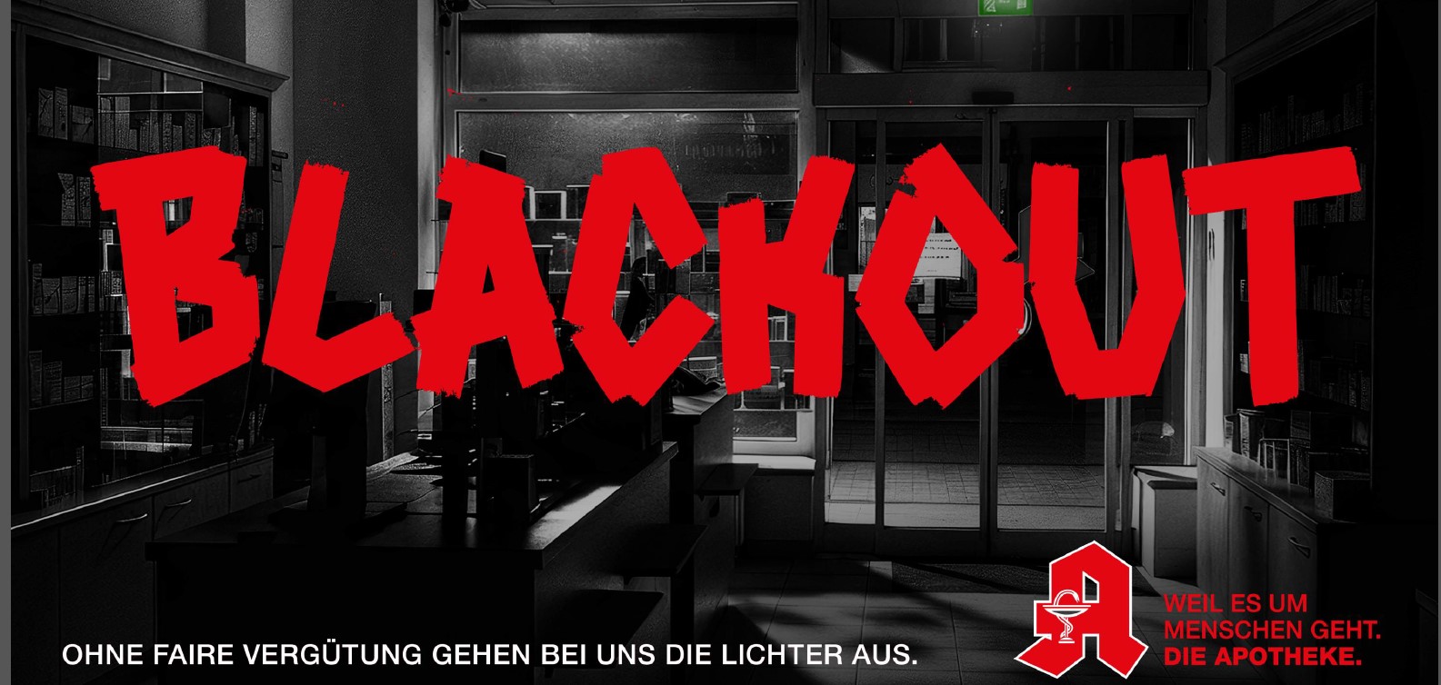 Die Aktion trägt den Namen „Versorgungsblackout“. Sie soll „erfahrbar machen, was es heißen würde, wenn die flächendeckende Arzneimittelversorgung wegbricht“. Die Botschaft, die die Apotheken mit der Protestaktion aussenden sollen, lautet: „Ohne die überfällige und im Koalitionsvertrag versprochene Erhöhung des Apothekenhonorars sieht es für die flächendeckende Arzneimittelversorgung im Land finster aus.“