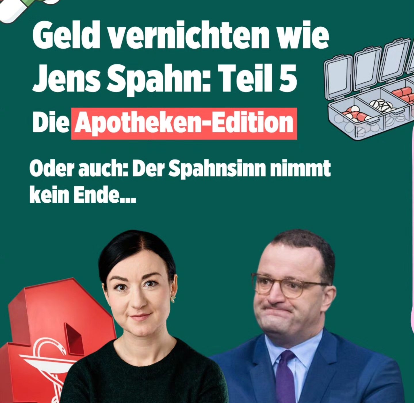 Insbesondere Linke und Grüne sind mit den bisher ergriffenen Maßnahmen zur Aufklärung der Geschehnisse nicht einverstanden. Allen voran hat es sich die Grünen-Haushaltspolitikerin und Berichterstatterin für Apotheken, Paula Piechotta, zur Aufgabe gemacht, Jens Spahn zur Verantwortung zu ziehen. Seit Monaten beackert sie das Thema auf ihren Social-Media-Accounts. Am Freitag hat sie sich in einem Post auf Instagram und Facebook nun auch die Apotheken vorgenommen – „Geld vernichten wie Jens Spahn: Teil 5 – Die Apotheken Edition“. Es habe zu viel Vertrauen und zu wenig Kontrolle gegeben, kritisiert Piechotta: „Es gab großzügig bemessene Pauschalen und nur wenig Kontrolle. Die Pflege oder Physiotherapeuten hätten sicher auch gerne solche Konditionen bekommen.“ Das Ergebnis seien Fehlanreize und zahlreiche schwarze Schafe.
